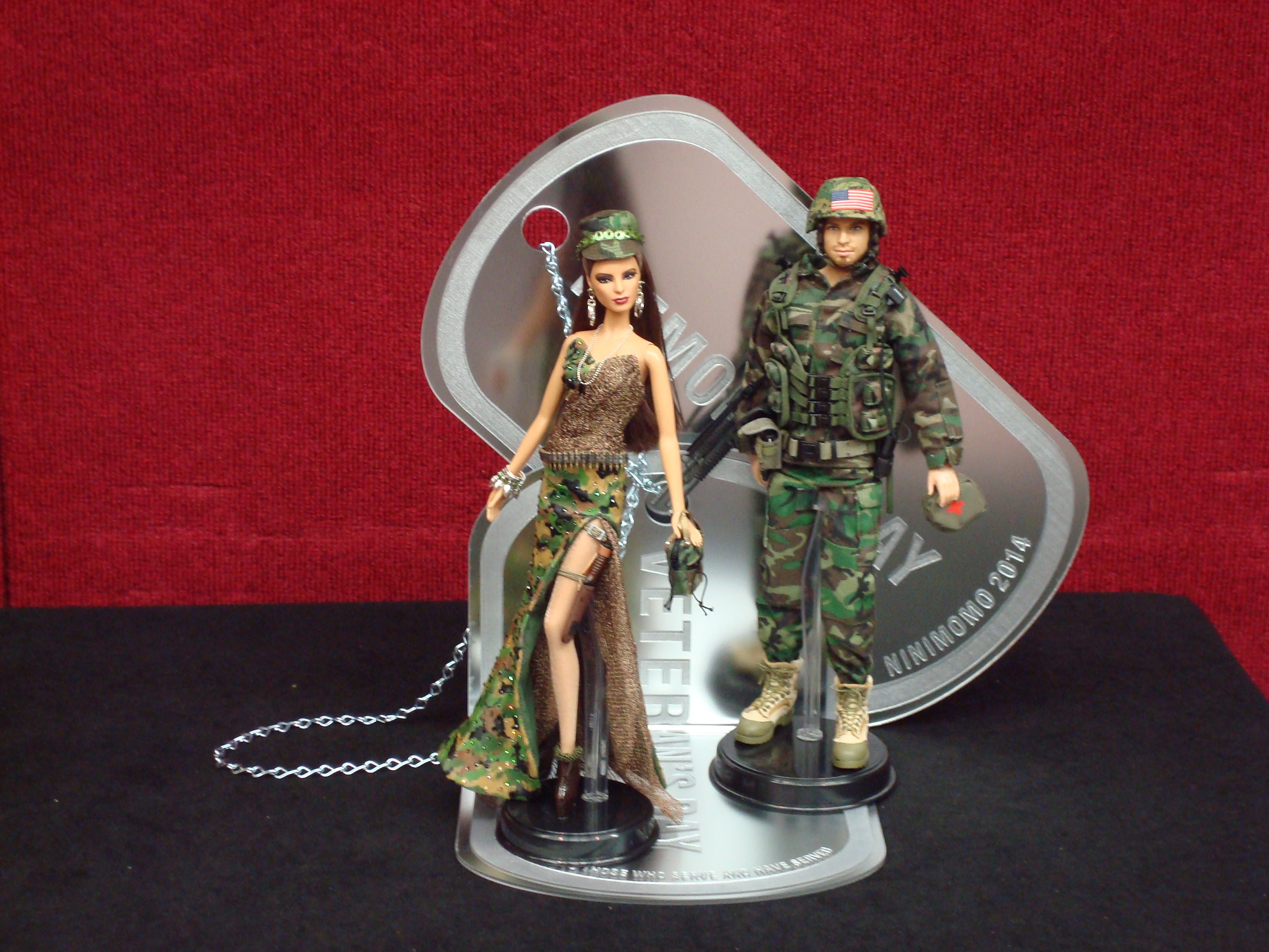 This is Ninimomo’s Silent Auction donation for the 2014 NBDCC. The display created represents Veterans and Memorial Day and is made from etched silver acrylic (it really does look like metal) meant to look like dog tags, complete with the chain.